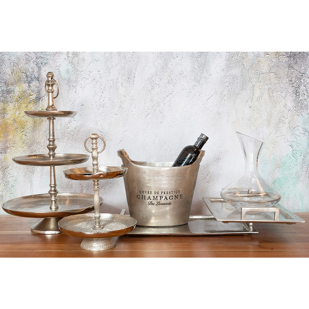Ο διακοσμητικός δίσκος BARRA με το καθαρό ορθογώνιο σχήμα και τα διακριτικά πλαϊνά χερούλια συνδυάζει λειτουργικότητα και μοντέρνα αισθητική. Η ασημί μεταλλική του επιφάνεια προσθέτει λάμψη και κομψότητα σε coffee tables, bar setups ή μπάνια. Ταιριάζει άψογα με γυάλινα βάζα, κεριά και μινιμαλιστικά αντικείμενα.