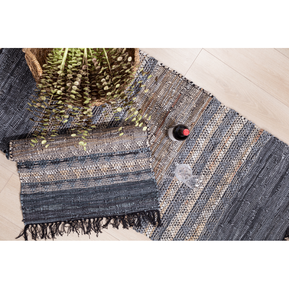 Το χαλί διαδρόμου CINDER συνδυάζει μπεζ και γκρι χρώματα σε ένα καθαρό, modern design. Το δερμάτινο υλικό ενισχύει την ποιότητα και την ανθεκτικότητα στη χρήση. Ιδανικό για εισόδους, διαδρόμους και narrow spaces. Ένα χαλί διαδρόμου που προσθέτει διακριτική κομψότητα.
