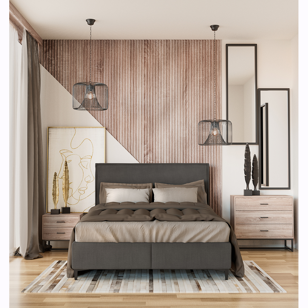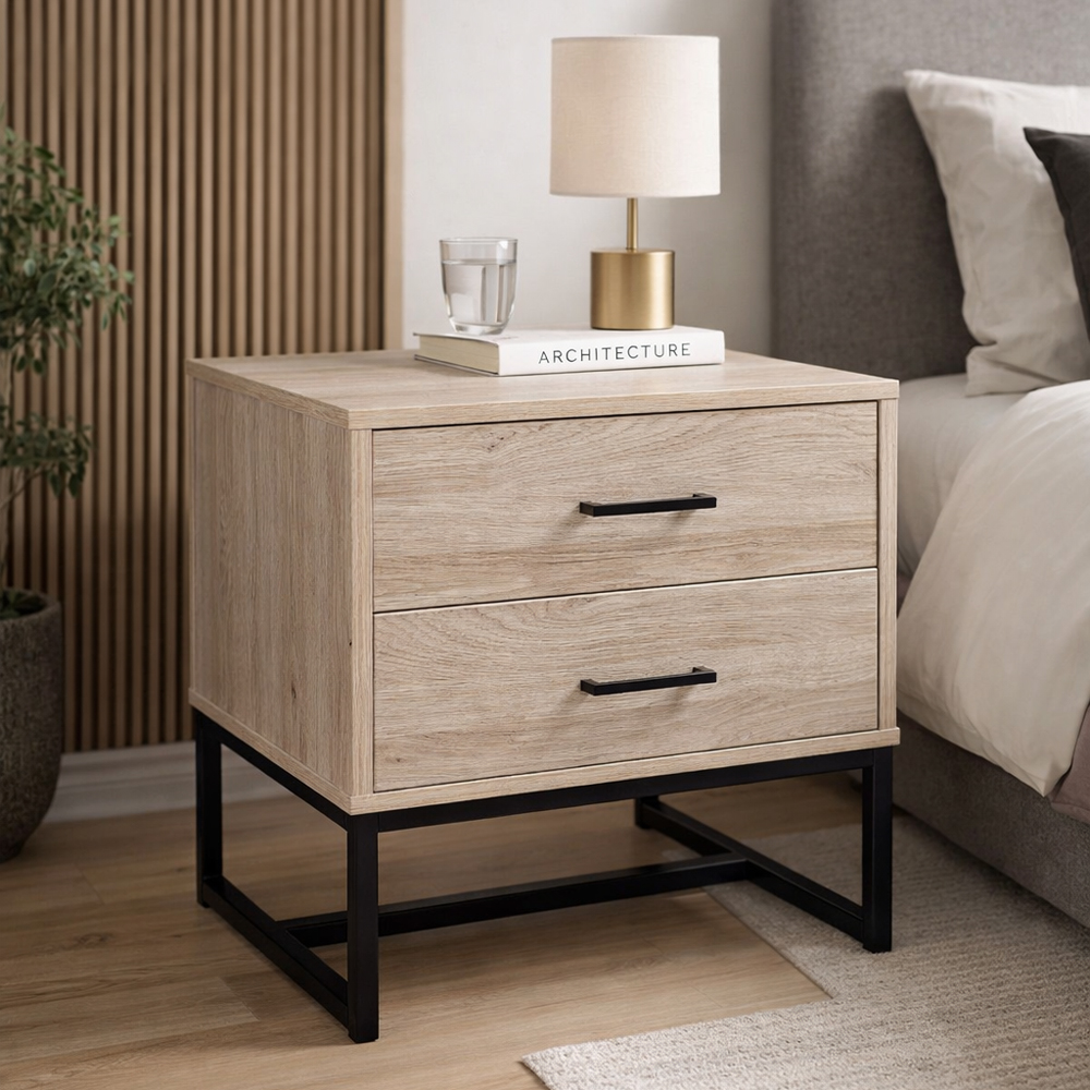 Το κομοδίνο NATURE συνδυάζει πρακτικότητα και μοντέρνο στυλ σε έναν κομψό σχεδιασμό. Κατασκευασμένο από μοριοσανίδα με επένδυση μελαμίνης σε φυσική απόχρωση δρυ και μαύρα μεταλλικά πόδια, δημιουργεί μία αισθητική ισορροπία ανάμεσα στο φυσικό και το industrial στοιχείο. Με συρτάρι και επιφάνεια για τα απαραίτητα, αποτελεί ιδανική επιλογή για κάθε σύγχρονο υπνοδωμάτιο.