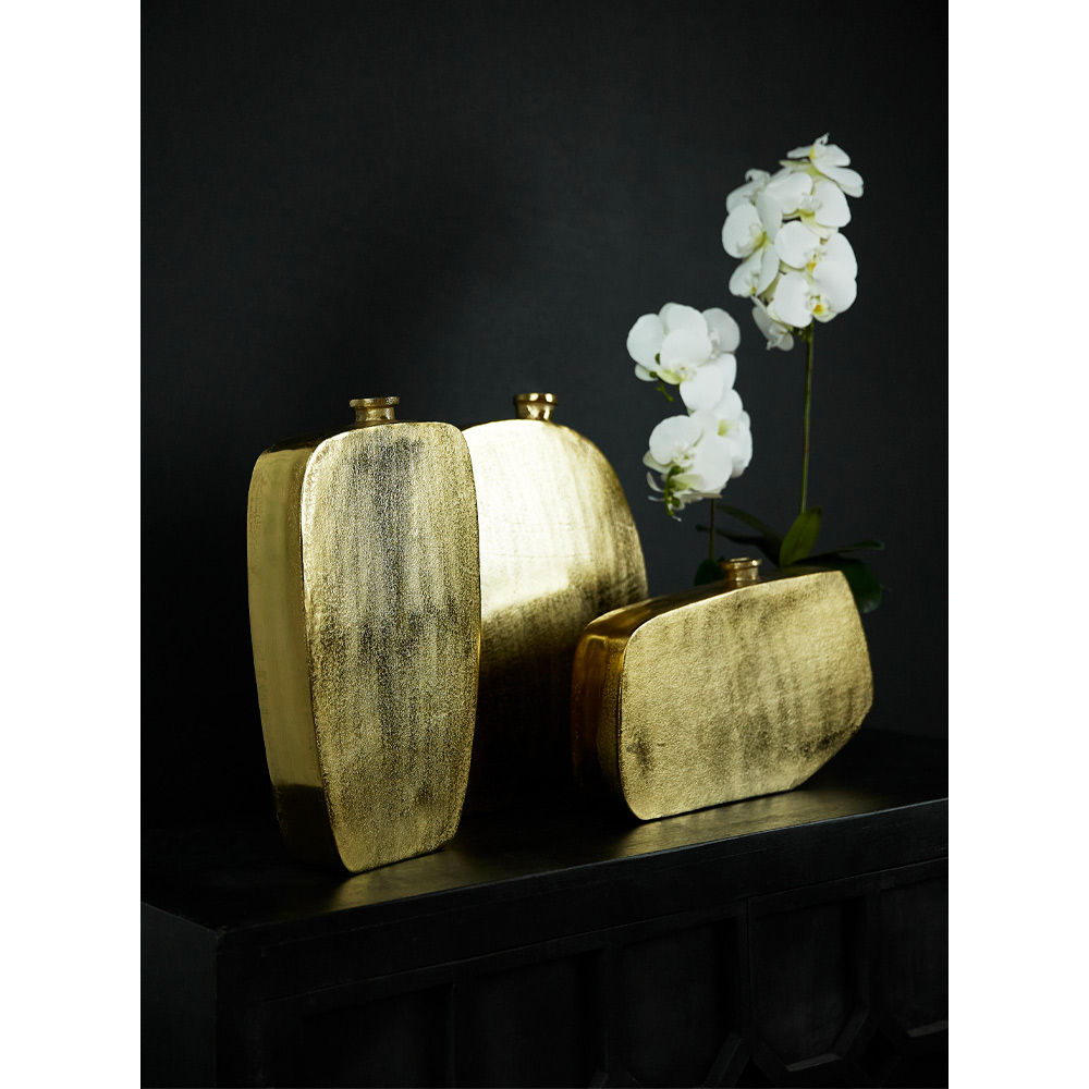 Η σειρά βάζων Oden, κατασκευασμένα από ανθεκτικό αλουμίνιο, με τις ρευστές γεωμετρικές γραμμές και την εντυπωσιακή χρυσή απόχρωση, θα αναδείξουν με σύγχρονη αισθητική τον χώρο σας. Σε συνδυασμό μεταξύ τους, αλλά και το καθένα ξεχωριστά, θα κοσμήσουν με τον πιο μοντέρνο τρόπο τα τραπέζια ή το γραφείο σας.