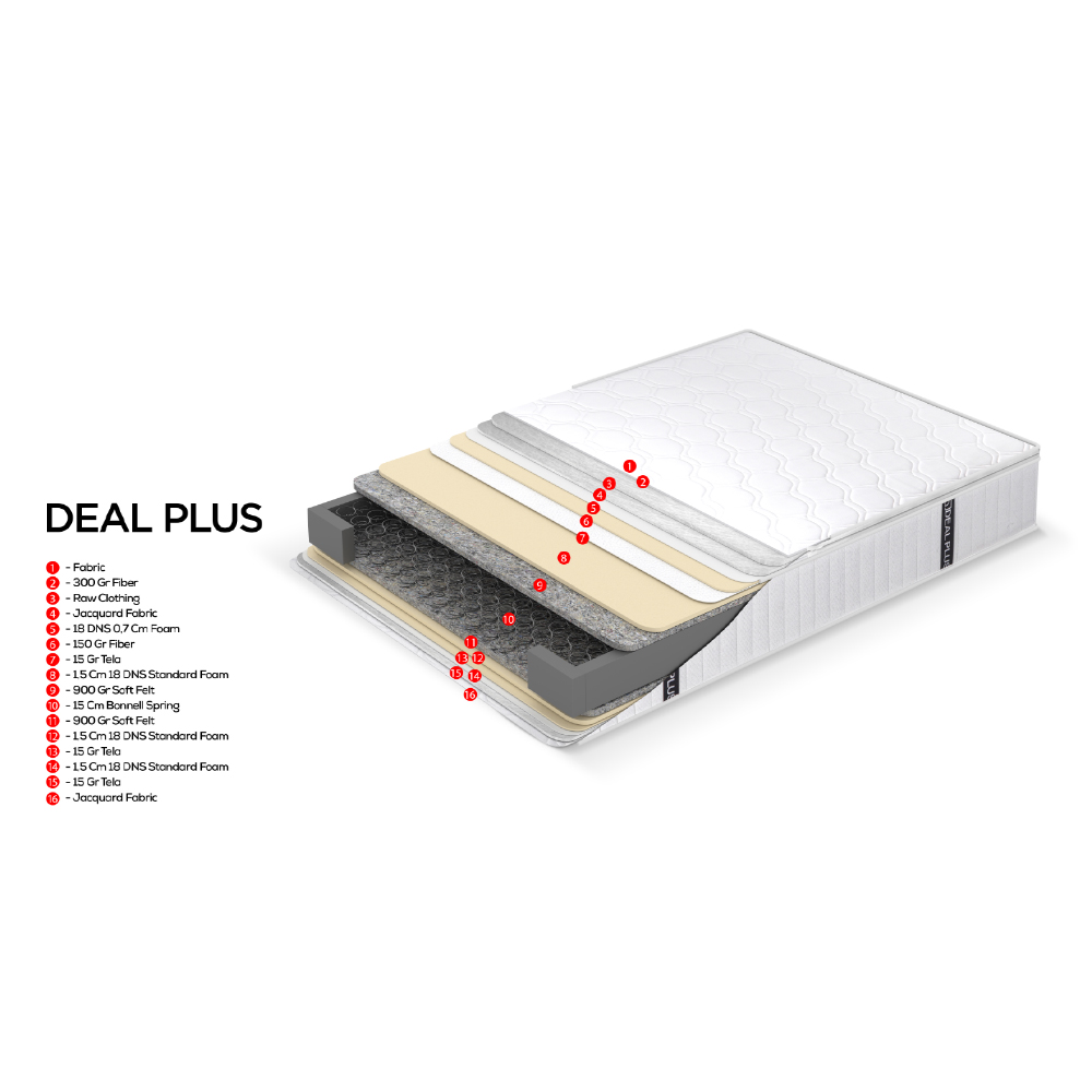 Το στρώμα DEAL PLUS μπορεί να διατηρηθεί καθαρό για πολλά χρόνια χάρις το αφαιρουμενου πλενομενου ανωστρωματος οπου μπορει να τοποθετηθεί και στις δυο πλευρές του στρώματος . Προσφέρει άνετο ύπνο με την τεχνολογία διπλού πλεκτού υφάσματος από γραφίτη - σφουγγάρι. Με τη χρήση διπλής όψης, το Monami σας επιτρέπει να επιλέξετε τη σκληρότητα της επιφάνειας που επιθυμειτε κατά την διαρκεια του ύπνου σας.
